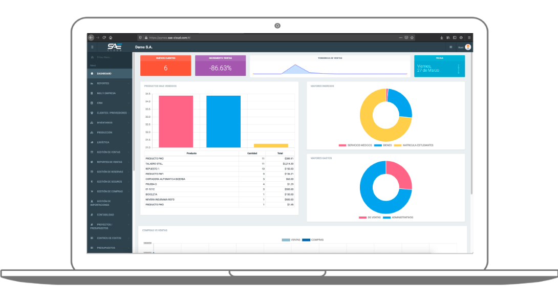 Integra tu empresa en una sola plataforma en la nube y gestiona todos tus procesos con mayor eficiencia y control, accediendo a información en tiempo real para tomar mejores decisiones.
